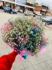Букет невесты из белой эустомы, синих роз и гипсофилы